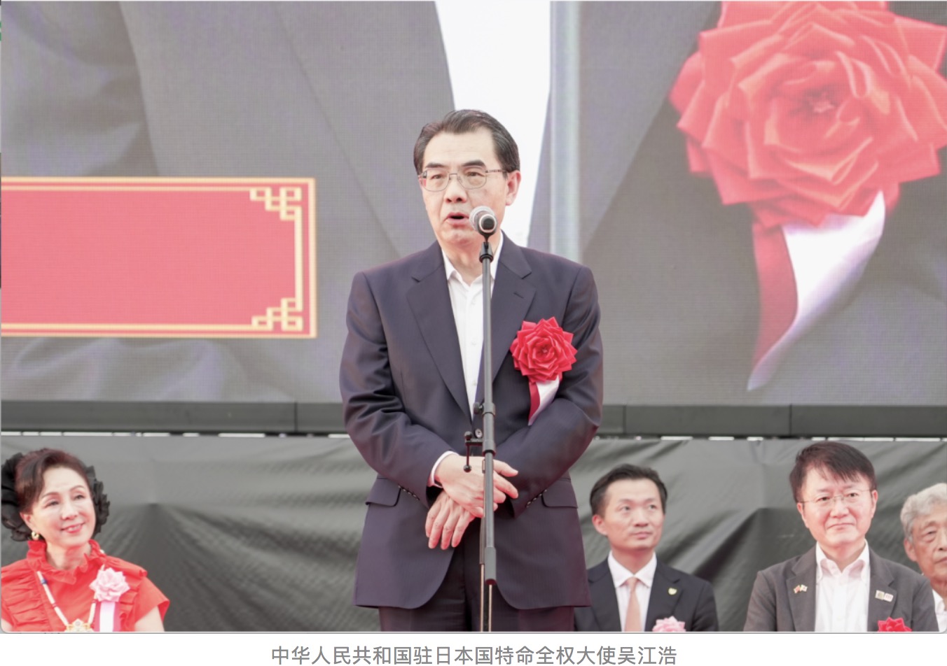 驻日本大使吴江浩出席开幕式并致辞。驻福冈总领事楊慶東、西藏自治区外经贸协会会长拉巴赤列、福冈市议会议长平畑雅博、九州华侨华人联合会会长奧薩卓瑪、我协会会长金潔敏,以及领区华侨华人和日本友好人士代表及越南、泰国驻福冈总领事参加开幕式,县知事服部誠太郎、县议会议长藏內勇夫分别书面致辞。